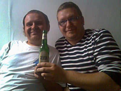 Nachschub. Und was machen wir beide Idioten... Stellen eine leere Bier-Flasche